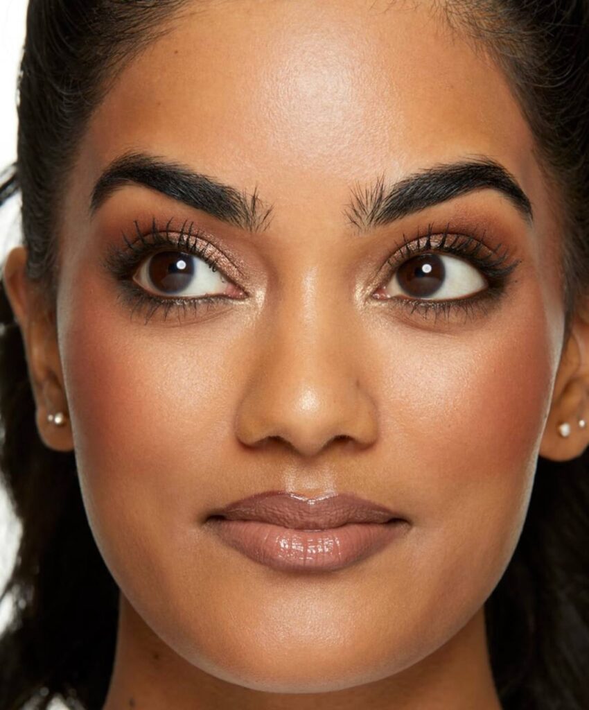 This look focuses on healthy skin, warm-balanced tones, and subtle definition.